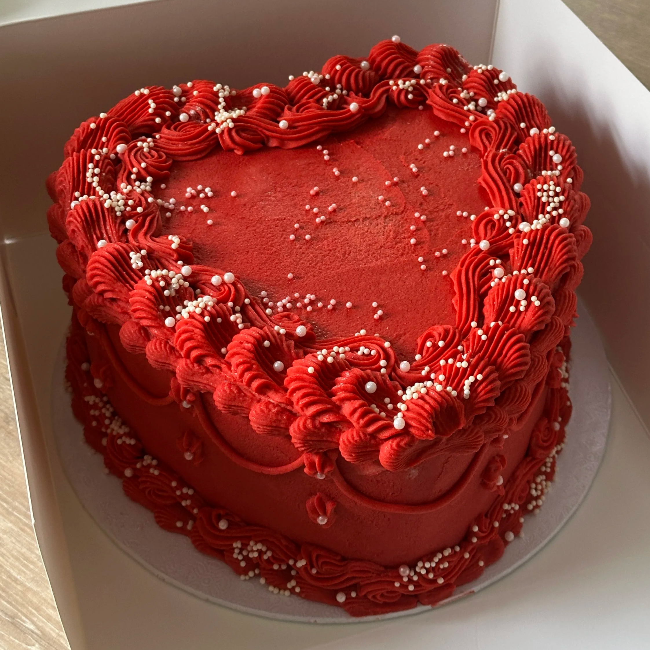 I use ermine buttercream for all of my cakes. It’s an old‑fashioned buttercream which is soft, airy and naturally less sweet.